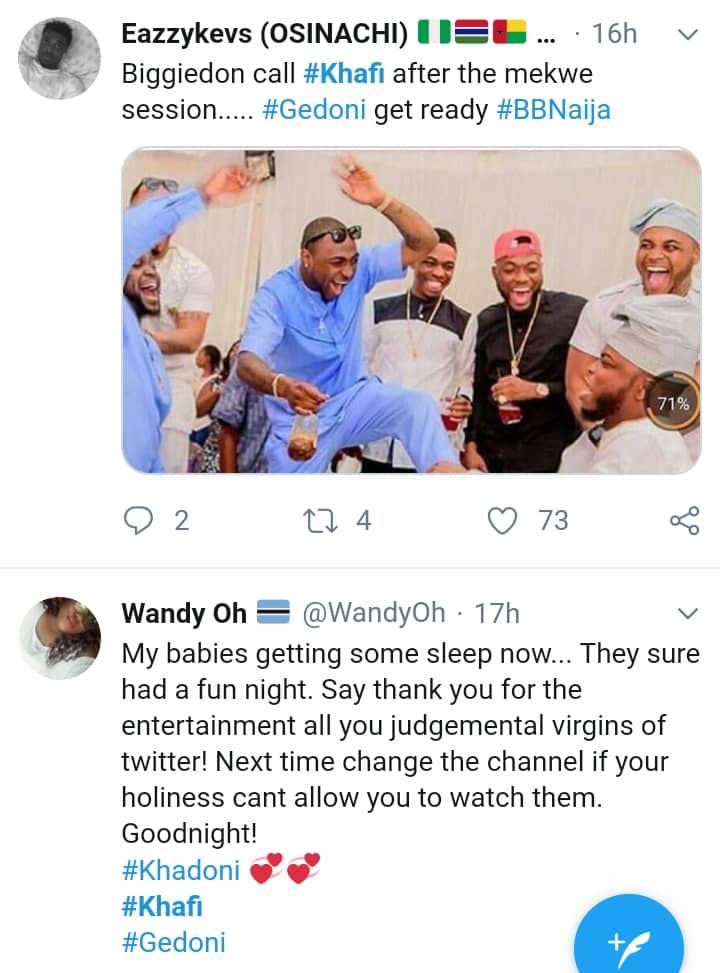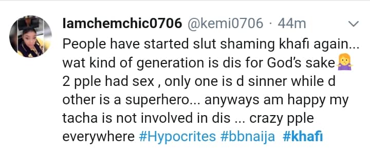 This has really got Nigerians talking. Many have criticized Khafi for her sexual exploits and prowess on BBNaija while others hailed her for being real.