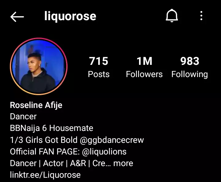 Before she went to the BBNaija house, Liquorose had well over 700,000 followers on Instagram.