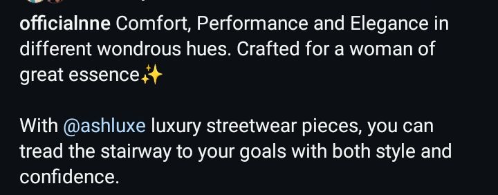 Nne wrote, “Comfort, performance, and elegance in different wondrous hues. Crafted for a woman of great essence. With @Ashluxe luxury streetwear pieces, you can stride towards your goals with both style and confidence”.