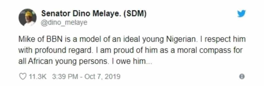 #BBNaija: “Mike is a moral compass for all young Africans”- Dino Melaye