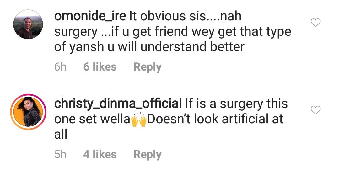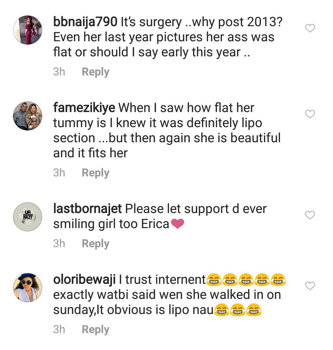 Big Brother Naija season 5 housemate, Rebecca Sampson Nengi has been accused of doing body enhancement surgery.