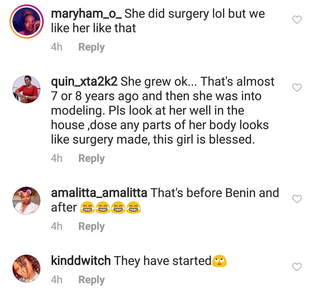 The beautiful housemate who is gradually becoming a controversial one, has been entangled in rumors of surgery since her old photos surfaced.
