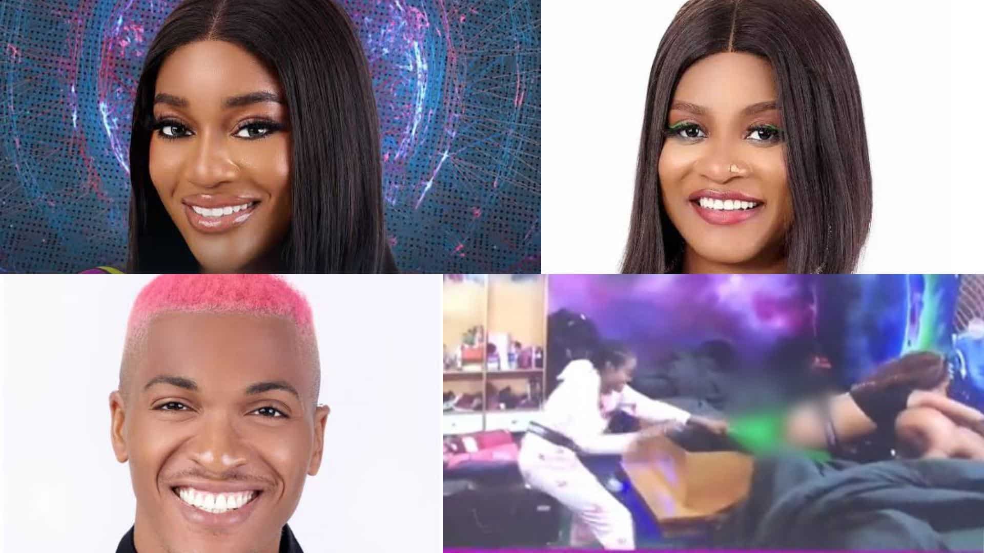 BBNAIJA: Netizens knock Beauty for pulling down Phyna’s trousers in a bid to protect Groovy from her (Video)