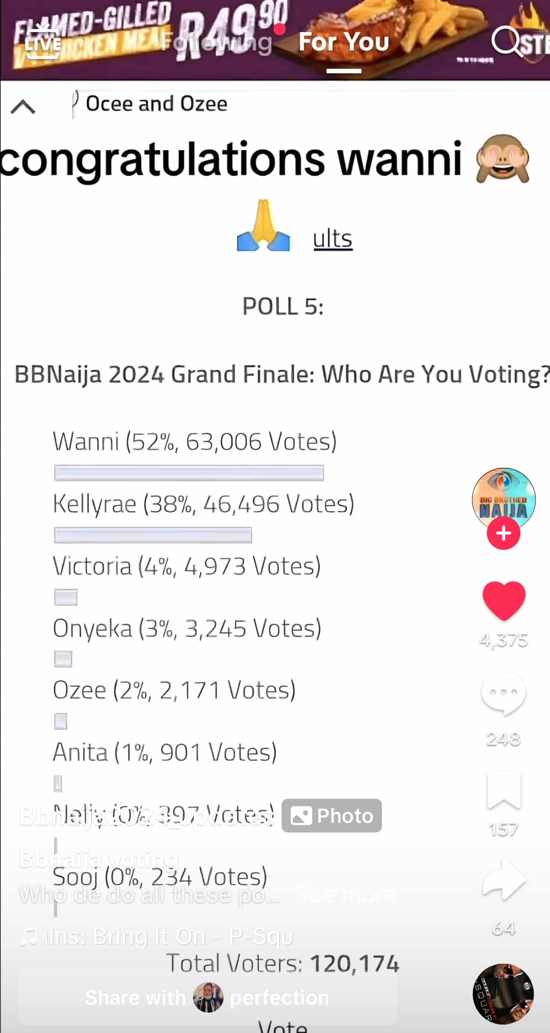 With less than 30 hours to the finale, the TikToker’s poll predicts Wanni as the winner, having outpaced Kellyrae and six other contestants with hundreds of votes.