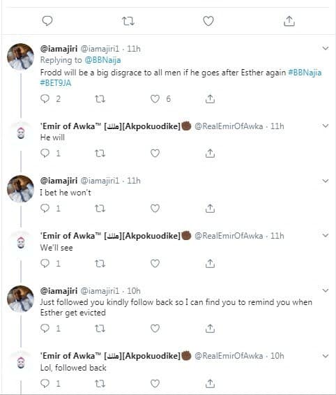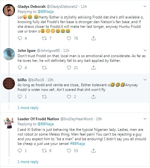It however, appears that Esther stylishly told Frodd not to give up on her yet, since her lover, Nelson have been evicted.