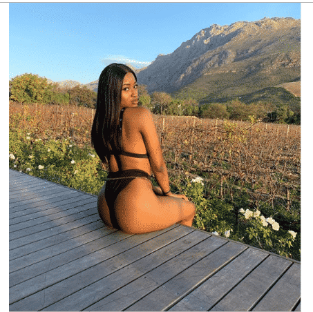 The former Miss Intercontinental Nigeria paid major emphasis on her derriere with the outfit chosen for the photo and posed seduc,tively for her shot. The photo has garnered thousands of likes and comments.