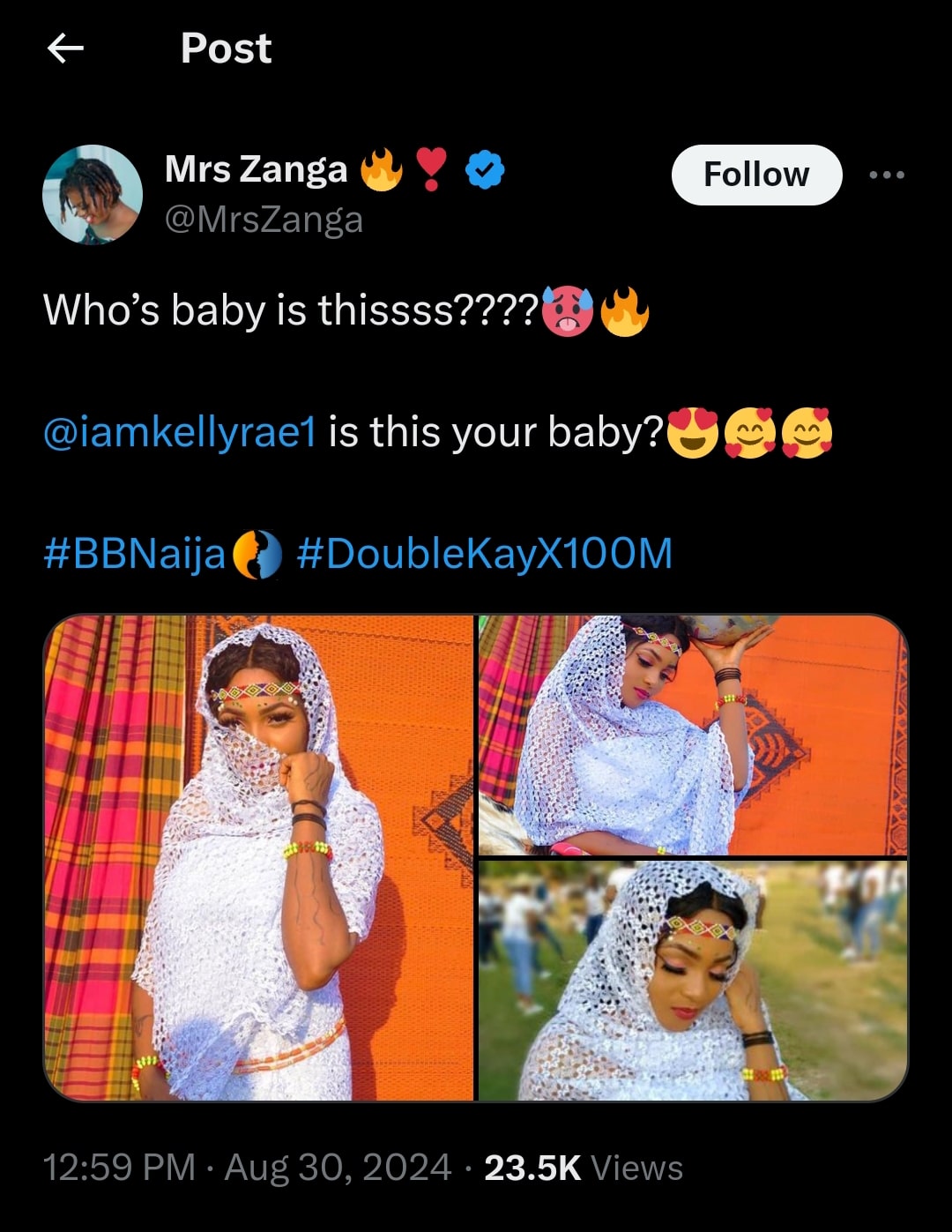 The user’s statement was accompanied by photos of the female housemate Kassia.