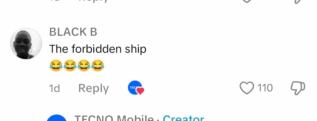 The user, BLACK B, wrote, “The forbidden ship😂😂😂😂.”