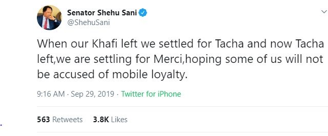 “When our Khafi left we settled for Tacha and now Tacha left, we are settling for Mercy, hoping some of us will not be accused of mobile loyalty,” he said on his twitter handle.