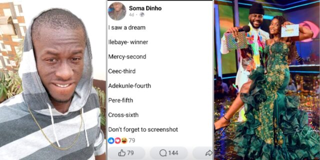 In his dream, Soma claimed to have foreseen Ilebaye as the ultimate winner of the reality show, with Mercy securing second place, followed by CeeC in third, Adekunle in fourth, Pere in fifth, and Cross in sixth.