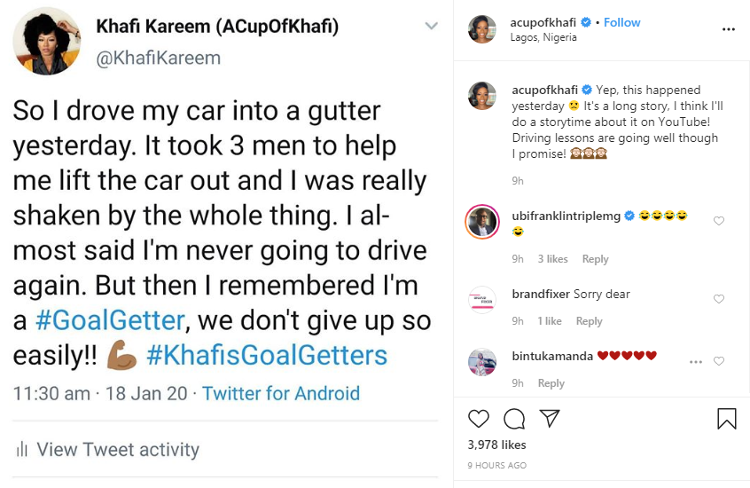 Kkafi further disclosed that she remembered she is a goal getter after almost saying she won’t be driving over the incident which occurred yesterday January 17.
