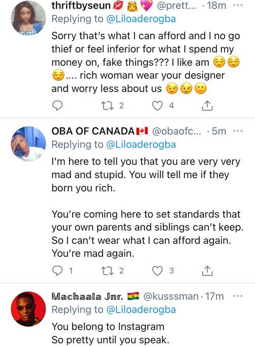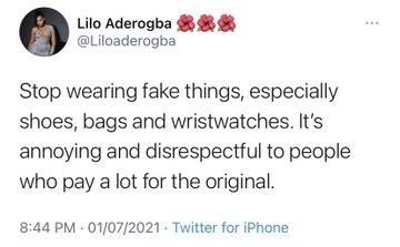 Lilo, in her tweet, spoke about those who wear fake things, mainly bags, shoes and watches.