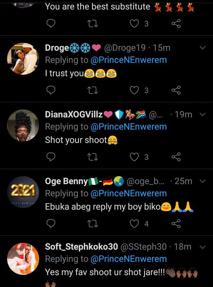 Ex-Big Brother Naija Housemate, Prince Nelson Enwerem has offered to substitute Ebuka Obi-Uchendu in a TV show, Rubbin minds now.