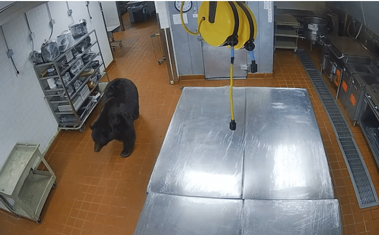According to a statement released by Colorado Parks and Wildlife (CPW), upon entering the hotel’s kitchen, the security guard came face to face with the intruding bear.