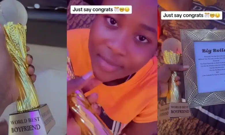 Beautiful Nigerian lady honors boyfriend with ‘World’s Best Boyfriend’ award and heartfelt gifts on Valentine’s Day
