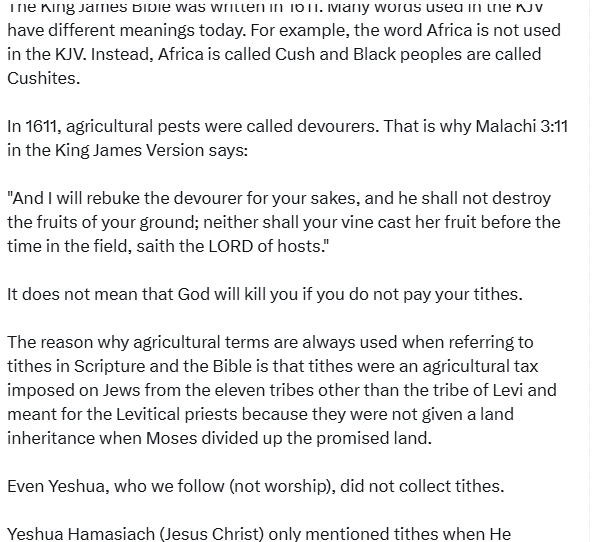 I have read Scripture in the original Hebrew, Aramaic, and Koine Greek languages. The word “devourer” in the King James Version of Malachi 3:11 is an agricultural term. It is common in agriculture. The devourer there just means an agricultural pest. It will be clear if you read that verse in the original Hebrew or a modern-day English version. Let me give you some versions: