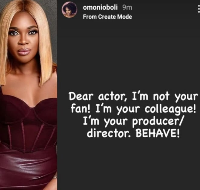 Setting the records straight, Omoni Oboli told the actor that she’s a producer, director, colleague, and never a fan of the actor.