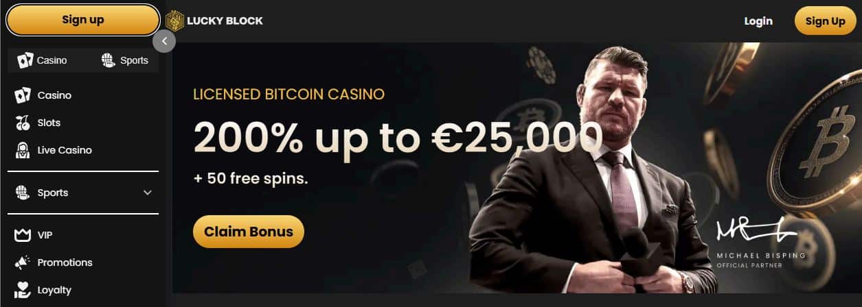 4. Lucky Block – Best Platform for Telegram Users + 200% Welcome Bonus up to €25,000