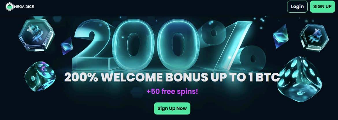 - Mega Dice – Engaging Gaming Experience + 200% Bonus up to 1 BTC