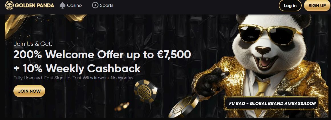 7. Golden Panda – Best Cashback value for Players + 200% Welcome Offer Up to €7,500 + 10% Weekly Cashback
