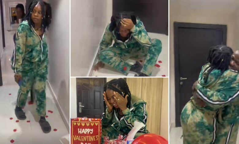“Best gift ever” – Lady ecstatic as US-based husband flies down to Nigeria to surprise her (Video)