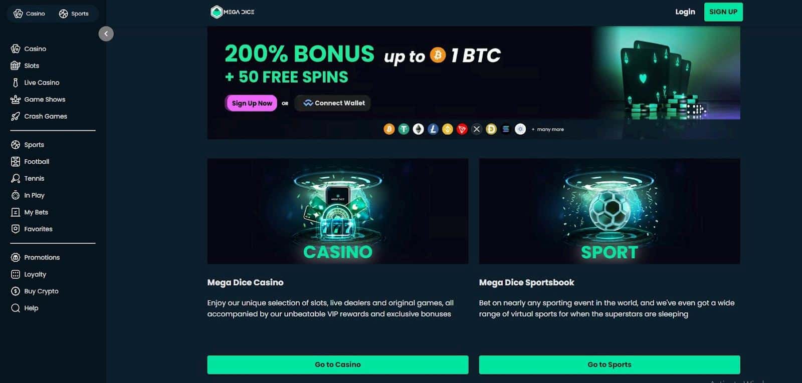 6. Mega Dice – Innovative Casino on Telegram with a 200% Bonus up to $37,000 (1 BTC), 50 Free Spins, and a $7 Free Sports Bet