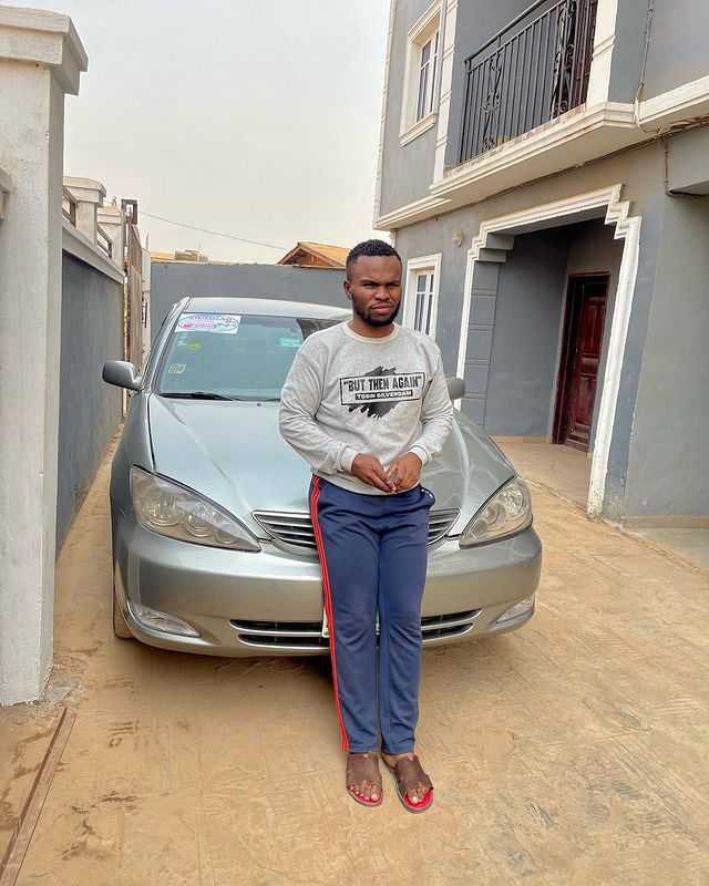 Controversial Instagram blogger, Tosin Silverdam, rejoices as he unveils the gift of his first car to himself.