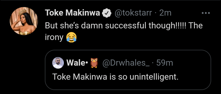 Between Toke Makinwa and a troll who said she is ‘unintelligent’