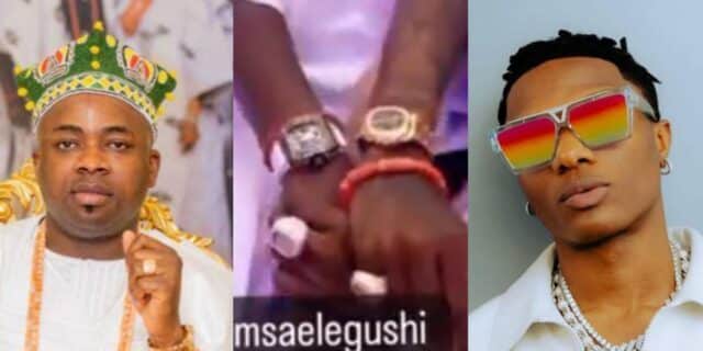 Nigerian singer Ayodeji Ibrahim Balogun, popularly known as Wizkid, garnered attention online as he was seen comparing wristwatches and jewelries with His Royal Majesty, Oba Alayeluwa Saheed Ademola Elegushi.