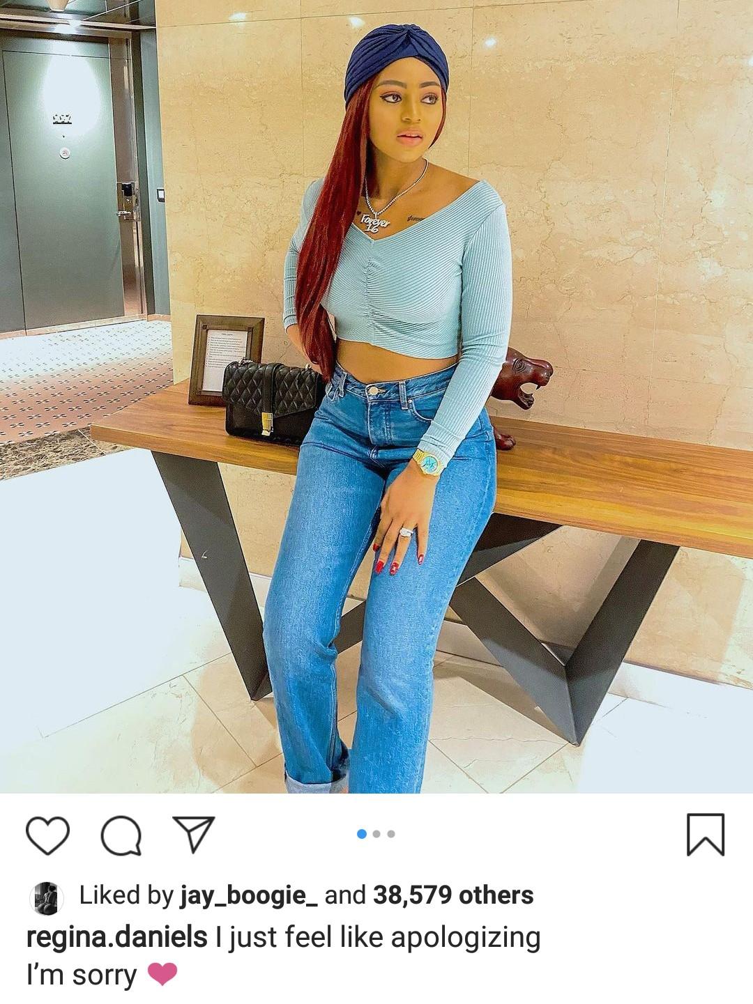 Nollywood actress and billionaire wife, Regina Daniels has taken to Instagram to apologise to her fans.