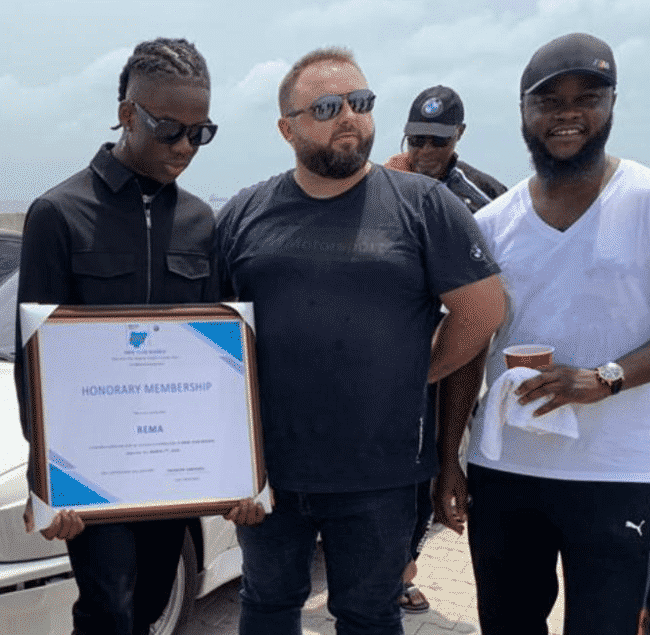 Mavin starboy, Rema, yesterday received the Honorary Membership Award of the BMW Club of Nigeria for his commitment and promotion of the brand in his recent hit single, “Beamer” (Bad Boys).