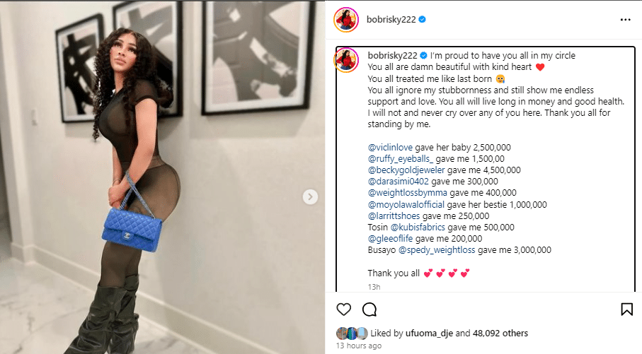 Bobrisky rolls out list of cash gifts he received from celebrities while in prison, leaks chat