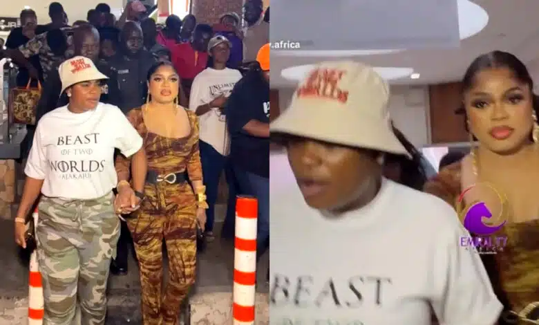 “Bobrisky sabi this packaging” – Reactions as Bobrisky gets mobbed by fans after arriving at cinema for Ajakaju movie