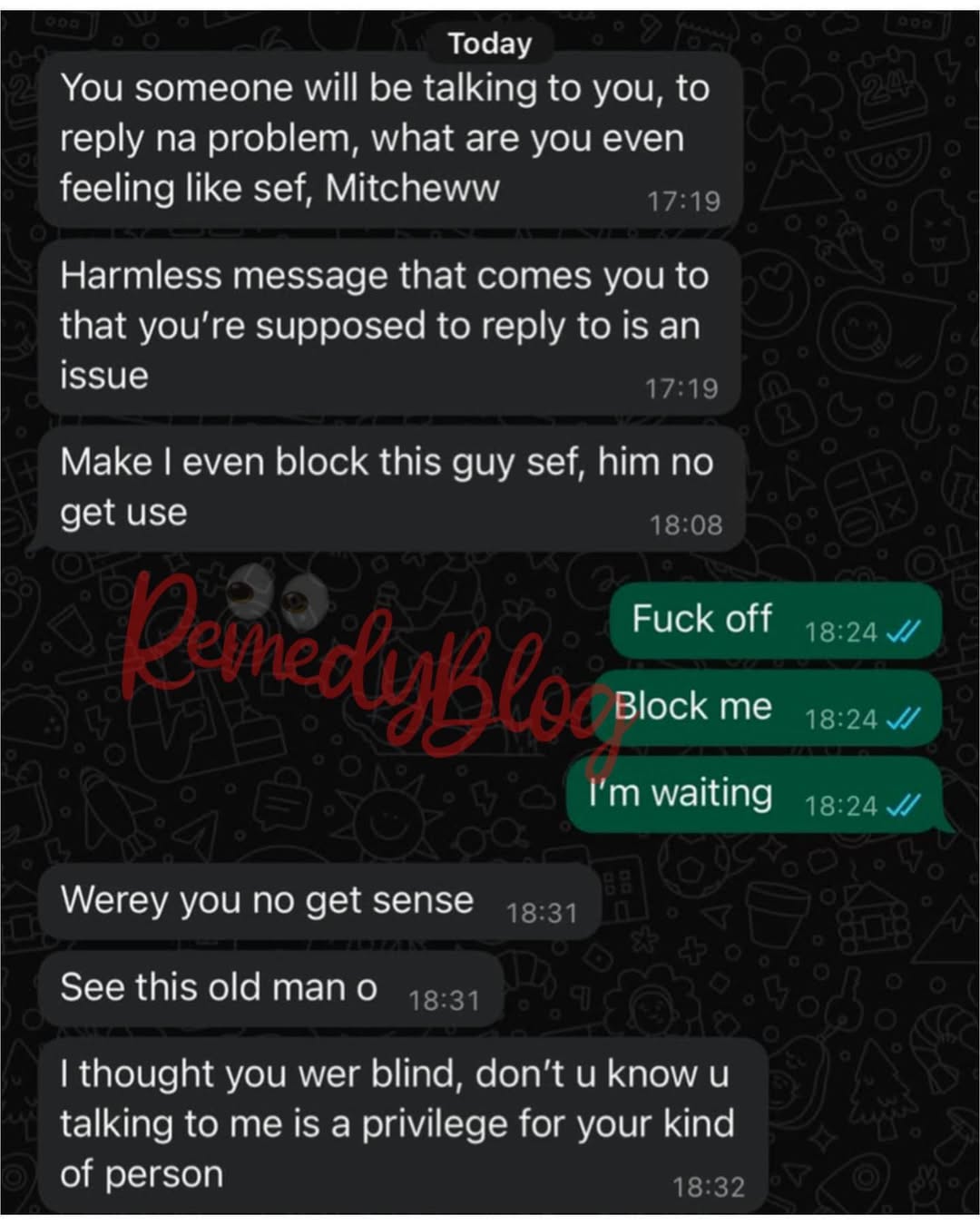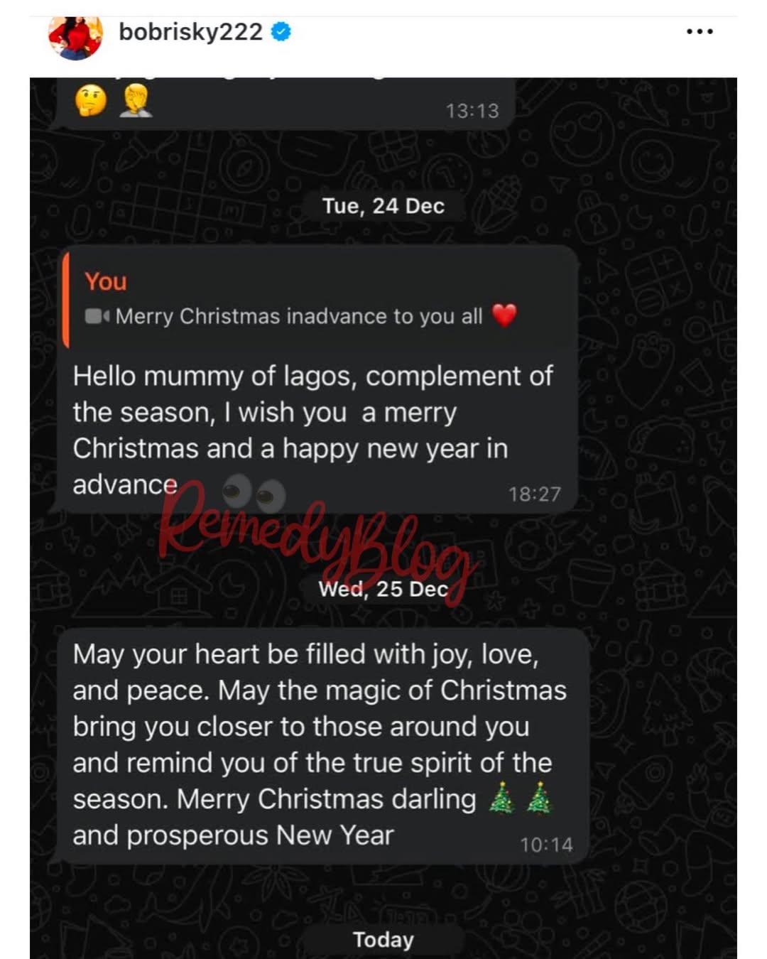 Bobrisky took to his page to share screenshots of the messages of the young man while lambasting him for cursing him out for ignoring his messages on WhatsApp.