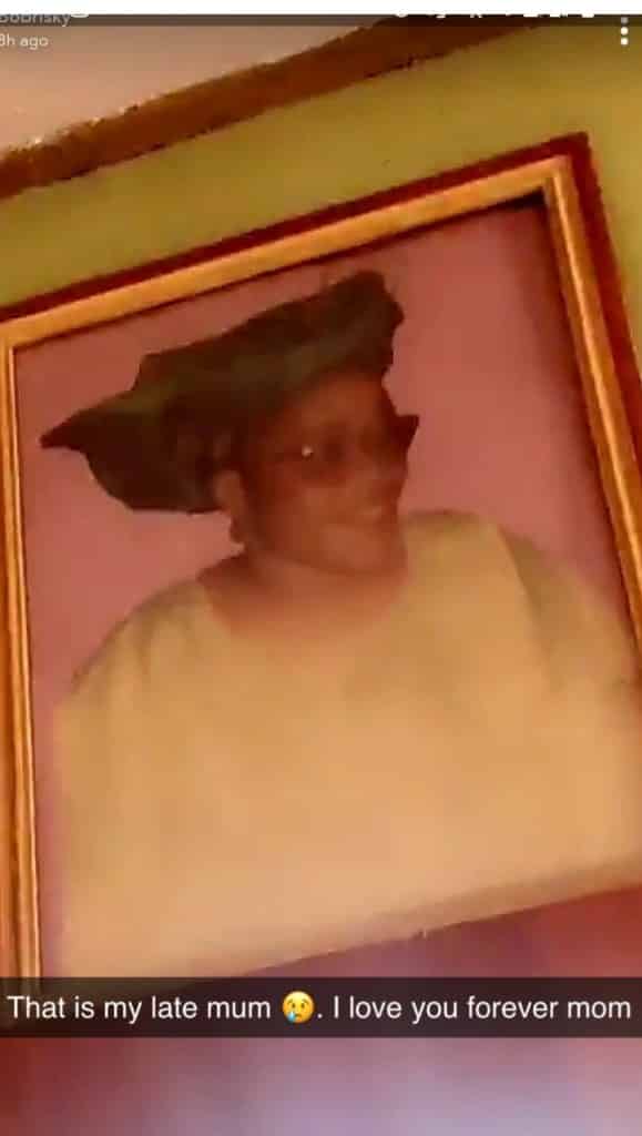 During his visit to their Family house, he shared a video showing the faces of his late father and mother on a wall picture.