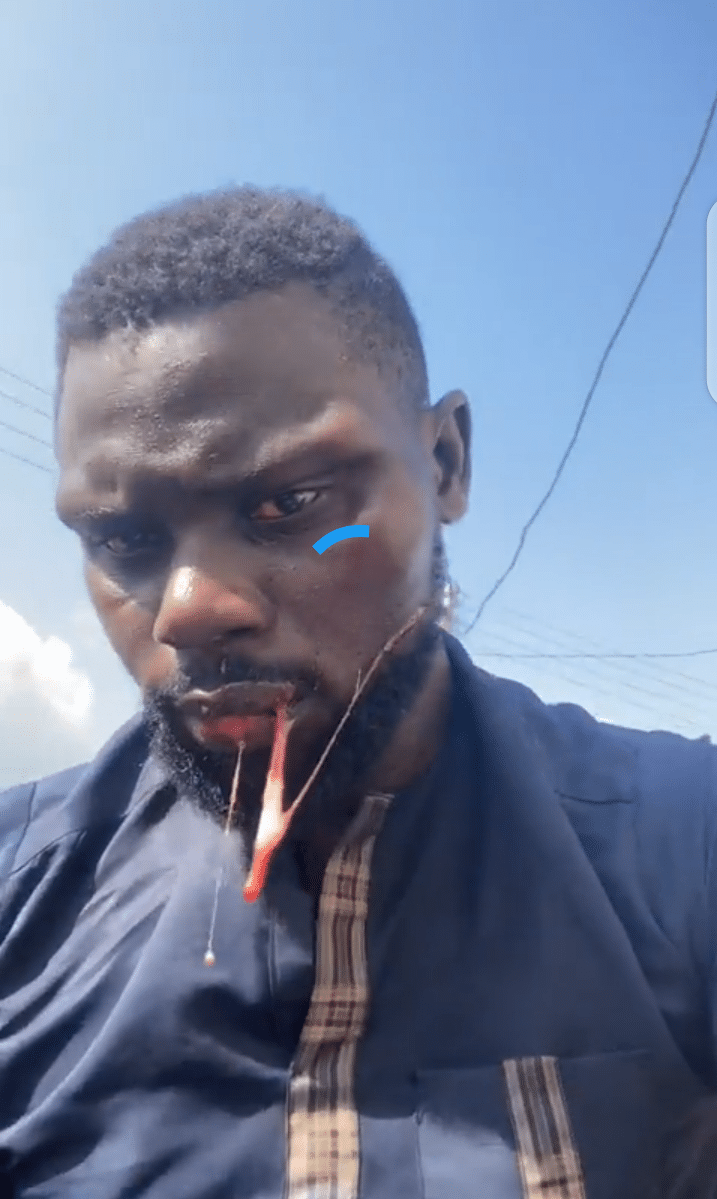“After 5mins of pretending to have fainted he left me and told me that sabi I still get strength now, make I come fight again now, I just ran out of the gate and when to pick up my phone in my car and made a video clip of how my face look”