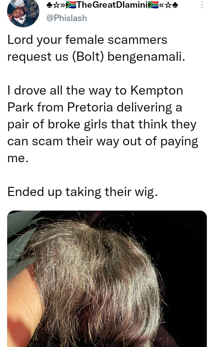 After learning that the ladies had no desire to pay for the journey, the guy identified on Twitter as @Phislash said that he took one of the ladies’ wigs.