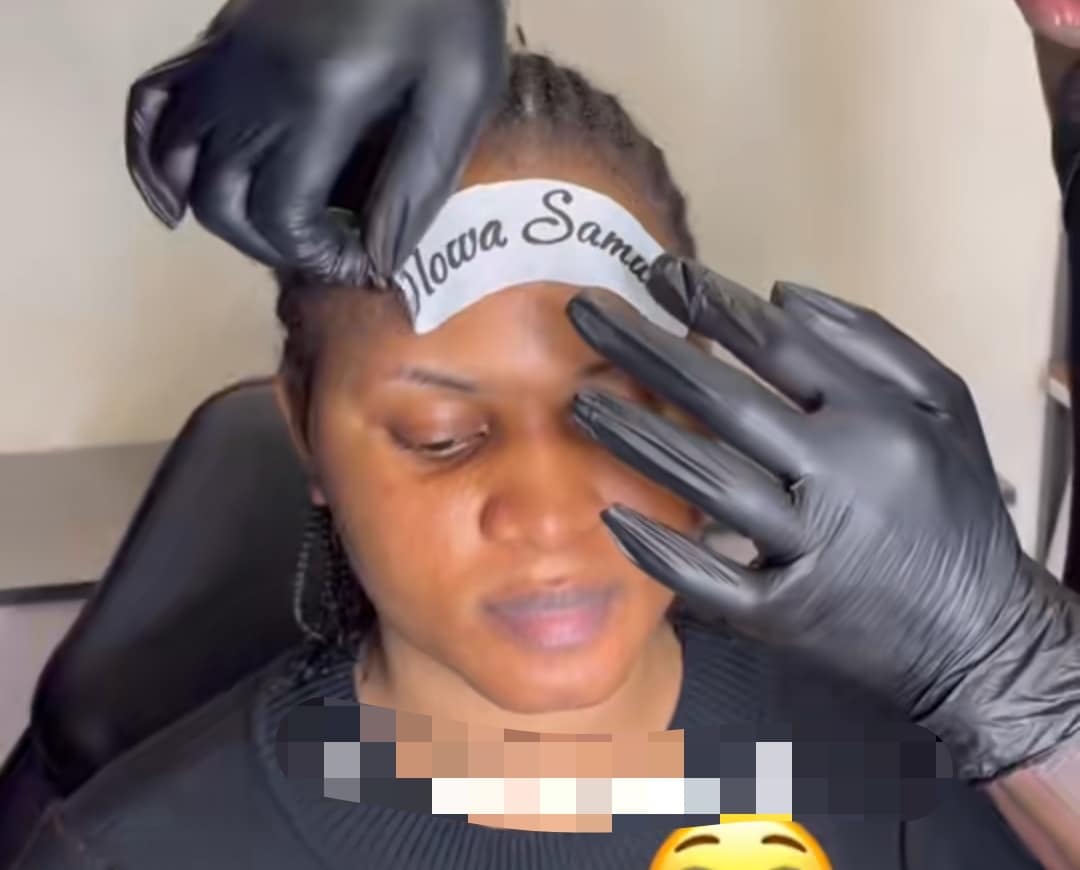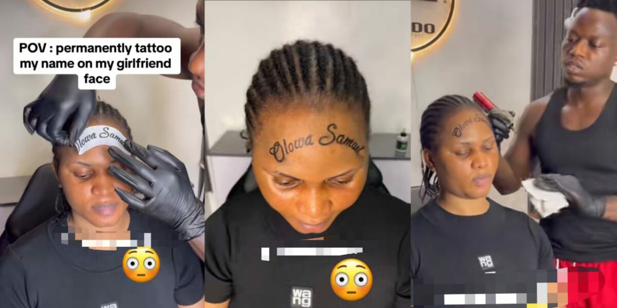 A Nigerian boyfriend has taken the internet by storm after permanently tattooing his name on his girlfriend‘s face.