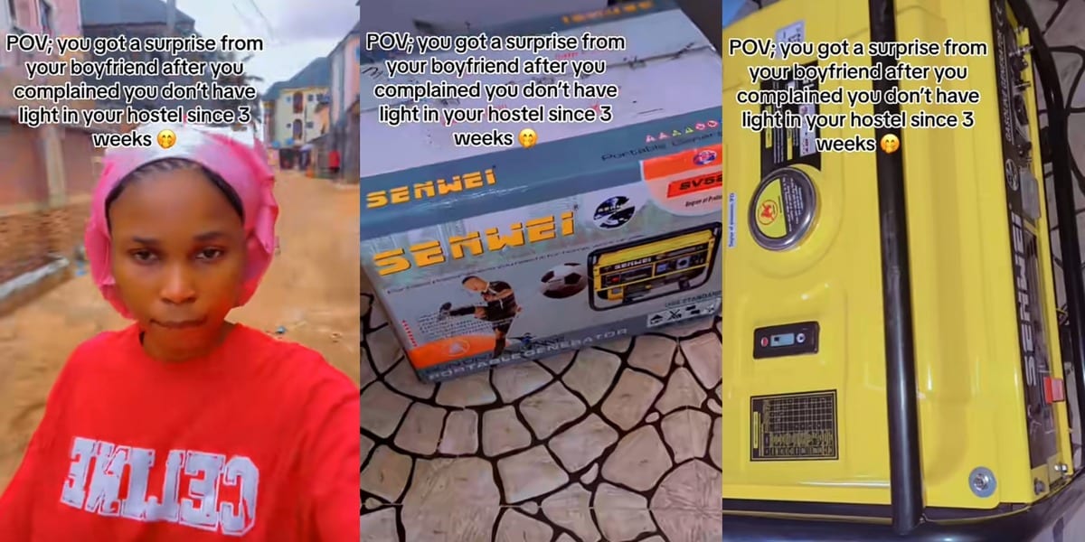 Boyfriend surprises girlfriend with brand new generator after 3-week power outage in her hostel