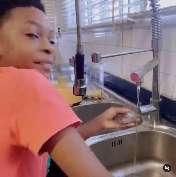 Popular dancer, Kafayat Oluwatoyin Shafau professionally known as Kaffy has shared a video of her son washing the dishes while restating how important it is for boys to be able to do some domestic chores.