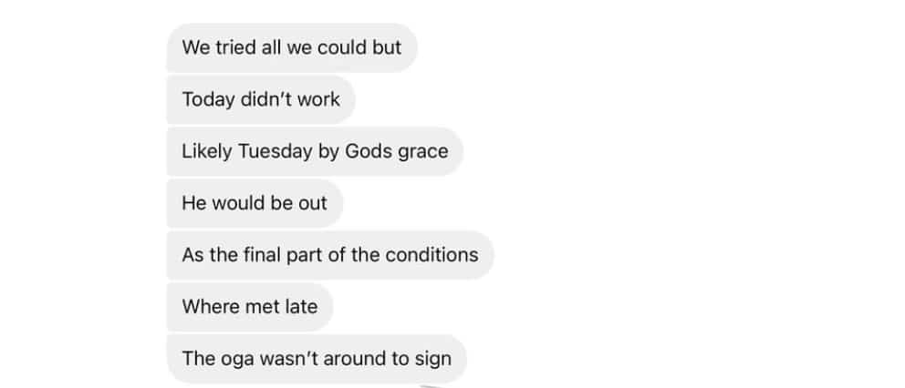 According to a source close to GossipMillNigeria, his bail conditions were met but were unfortunately concluded at the eleventh hour.