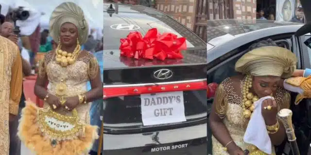 Bride gets emotional as she receives car gift from father on traditional wedding day