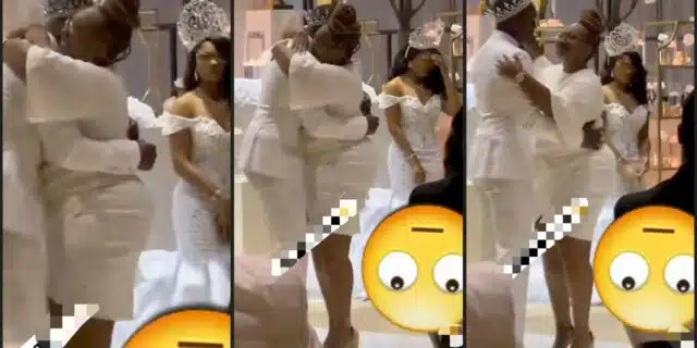 Whereas, the bride stood at some distance looking at them in a way that shows she’s not completely comfortable with the sight she’s beholding.