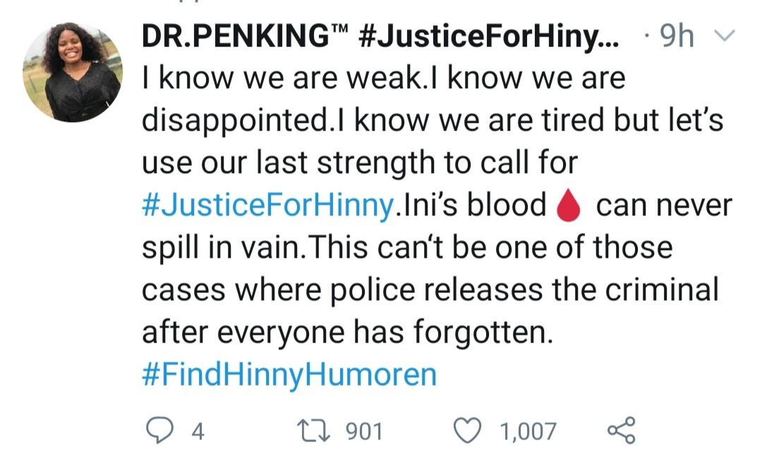 Notwithstanding, Ini’s family has made a demand on the Nigerian Police Force as they demand the remains of their daughter and sister.