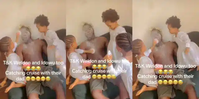“Bring out the beauty in Daddy” – Father sits pretty as little daughters give him a makeover in viral video
