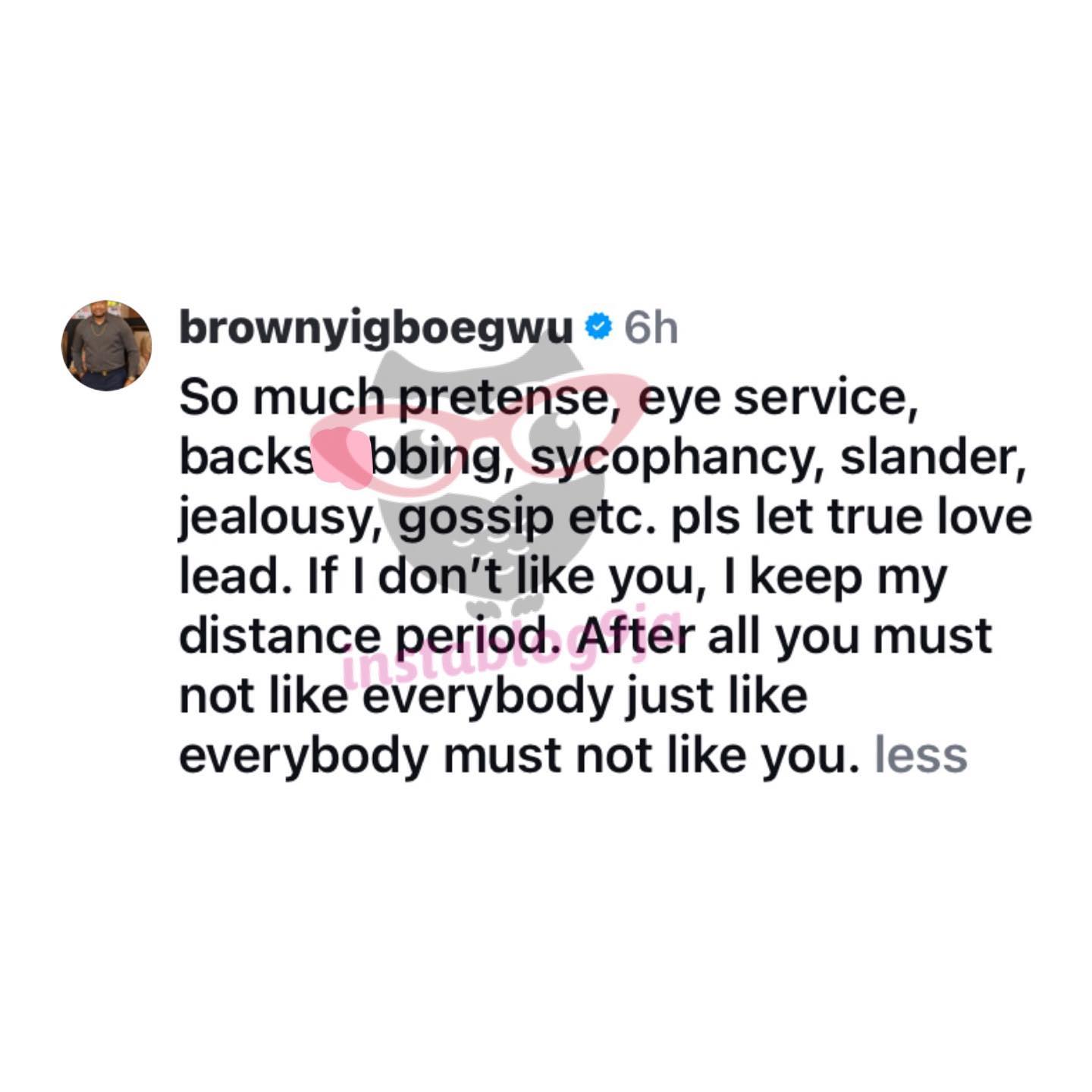 In a heartfelt post, Igboegwu criticized his colleagues for their inconsistent behavior, often speaking ill of others and then suddenly celebrating them.