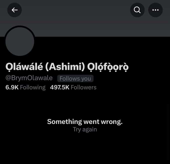 Nigerian singer, songwriter, sonic artist, actor, and author, Olawale Ibrahim Ashimi, better known as Brymo, has deactivated his X account.