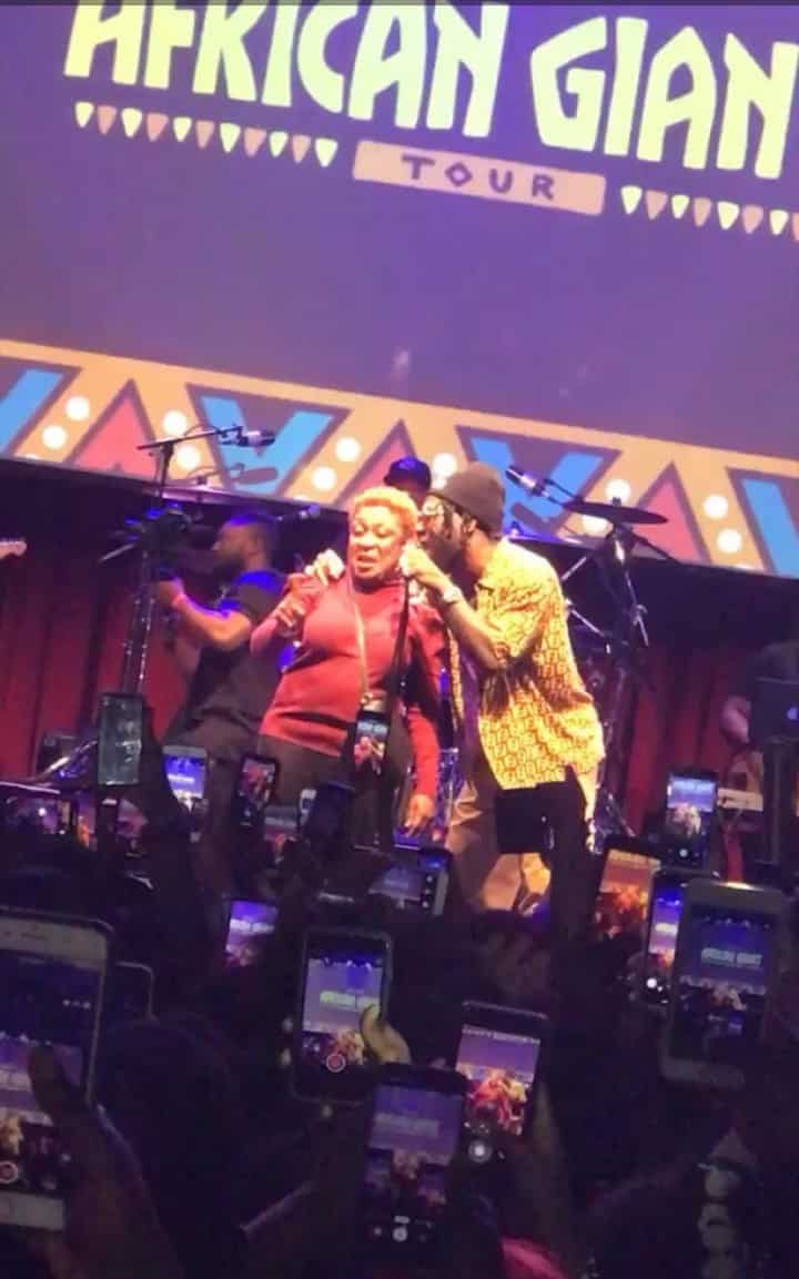 Burna Boy brought out his mum; Bose Ogulu, who also doubles as his manager to perform his 2019 hit song; “Dangote,” live on stage with him.