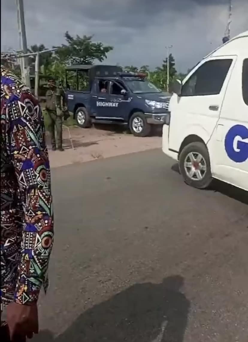 What the security operative muttered while the bus driver laid out his grievance was inaudible. He (bus driver) went on to say he won’t be moving out his vehicle which he blocked the road with, until the policeman pays for the damage.