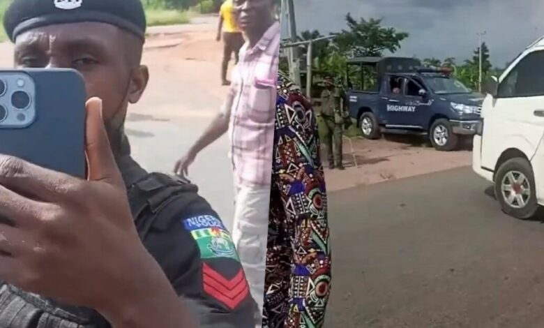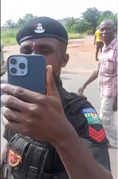 The aggrieved bus driver who was on his way to Umuahia, Abia state’s capital, was heard narrating what happened between them and one of the police officers who whipped out his phone to also record the scene with his colleague.